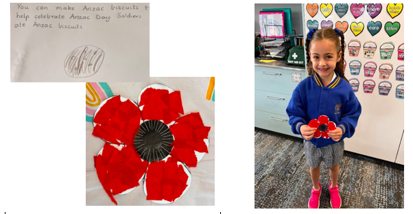 FA Amelia- “You can make Anzac biscuits to help celebrate Anzac day. Soldiers ate Anzac biscuits.”