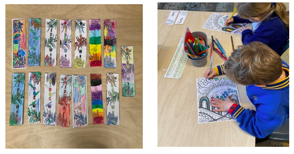 The Foundation students have been learning about NAIDOC week and how to celebrate Aboriginal, Indigenous and Torres Strait Islander history, culture and achievements. We have been reading a selection of Dreamtime stories, including ‘Why Koala Has a Stumpy Tail, Too Many Cheeky Dogs and How the Turtle Got Its Shell.’ The students created bookmarks to be used for our home readers and decorated indigenous patterns in traditional colours.