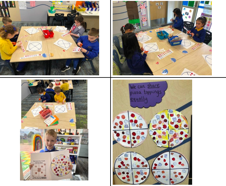 The Foundation students have been learning about division and sharing equally. We have been focusing on sharing objects one at a time so we can check if it is a fair share and everyone has the same amount. We have used concrete materials to share equally as well as completing cut and paste activities. Students have thoroughly enjoyed it!!