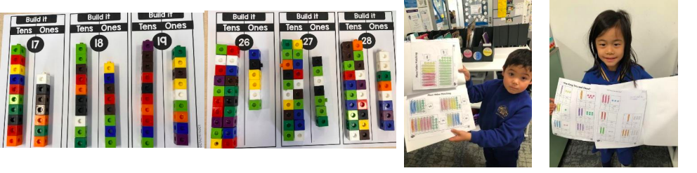 Students in Foundation have been learning more about place value. We have been making double digit numbers using unifix blocks, popsicle sticks, tens frames and MAB blocks. Students have been focusing on how many tens and how many ones make these numbers, for example, the number 23 can be represented as 2 tens and 3 ones. Below are some learning experiences we have engaged in throughout the week.