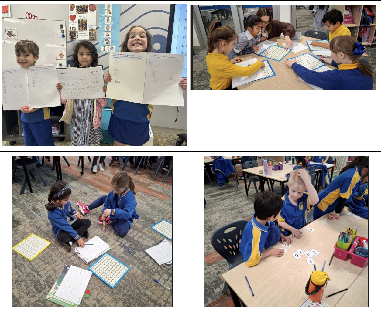 Grade 1 students have been focusing on place value, exploring tens and ones, and applying this knowledge to solve problems. They have also been learning and practising new strategies to add and subtract efficiently, such as using number lines, counting on, and doubles. Students have engaged in a range of hands-on activities, including games, partner work, and problem-solving tasks to build their confidence.