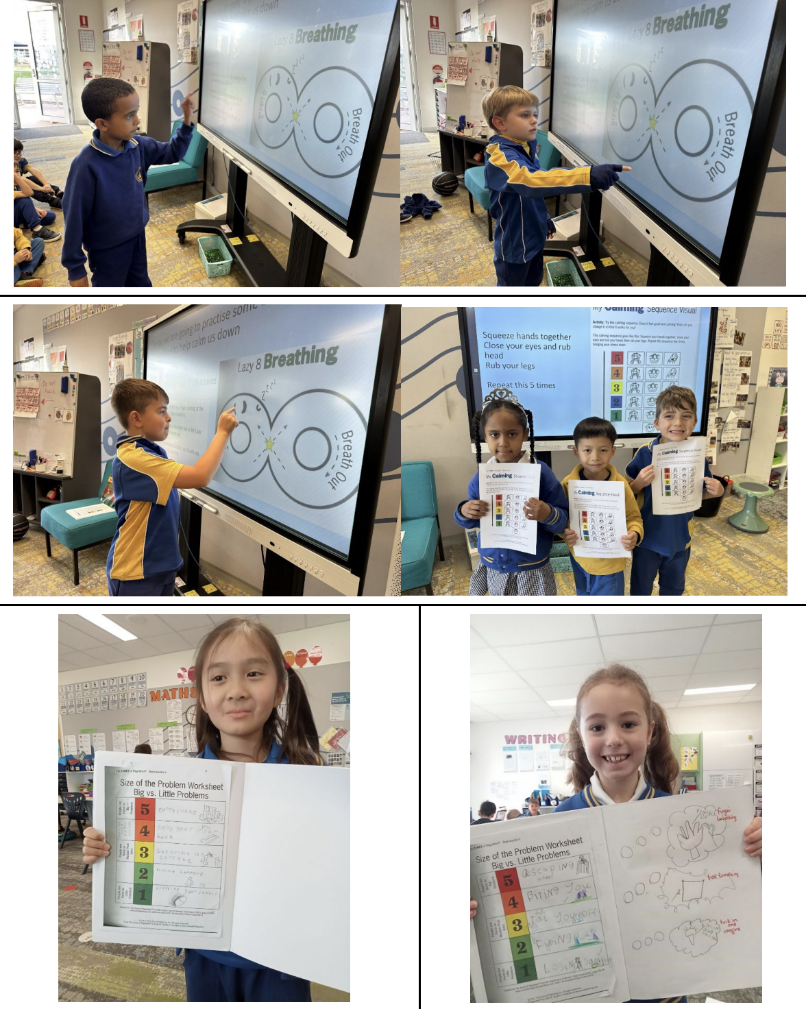 The Grade 1 students have been learning about the Zones of Regulation and how to manage their emotions. We’ve been exploring calming strategies like deep breathing, drawing, and using sensory tools to help us feel calm and focused. We have also learnt to match our reactions to the size of a problem small, medium, or large and how to use positive self-talk to support ourselves when things feel tricky. Students are gaining great insight into how to regulate their emotions.