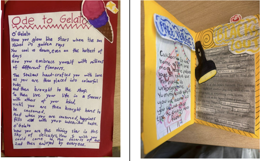 This term in literacy, Grade 5/6 students have been diving into narrative techniques, including character arcs, symbolism, imagery and building tension, through David Almond’s novel, Skellig. Inspired by the text, they are now applying their learning to craft their own narratives, with a special focus on writing and publishing picture storybooks for their buddy grades. Last term’s poetry unit was also a big hit! Students proudly published a collection of haikus, kennings, cinquains, limericks and blackout poems, showcasing their creativity and love for language.