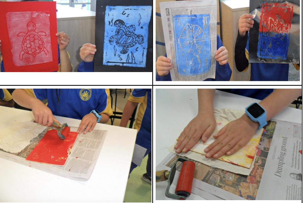 Over the past fortnight, our talented Grade 5 and 6 students have been diving into the art of printmaking. We began by sketching Australian animals and incorporating traditional Aboriginal-inspired lines and patterns into our designs. These sketches were then carefully transferred onto printing plates. Using ink paints, students experimented with printing on a variety of surfaces, resulting in some wonderfully creative and unique artworks. The art room may have been a little messy, but the energy and enthusiasm made it all worthwhile – what a fantastic experience in creative exploration!