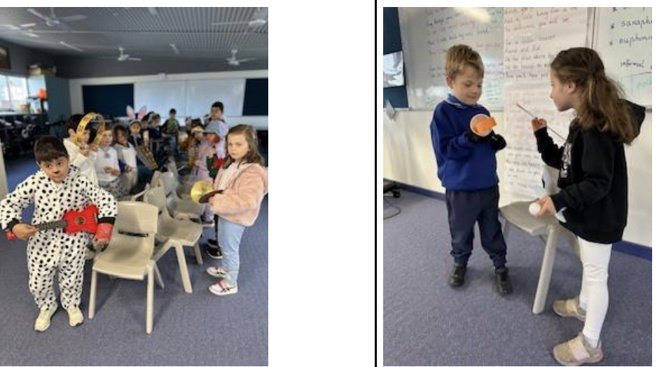 The students in Foundation, Grade One and Grade Two are moving towards a focus on drama, mine and role play. They are consolidating their skills in song, movement, sequence and repetition by performing songs with actions and emotion. This week the children have had such fun using props to enhance their performance of some well treasured folk songs.