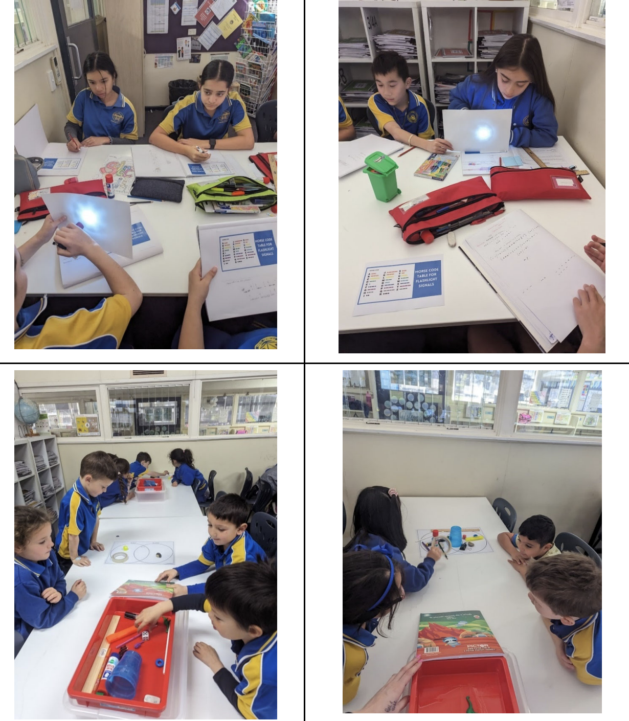 We celebrated Science Week with this year’s theme, "Decoding the Universe- Exploring the unknown with nature's hidden language". Students explored the idea that science is full of patterns, codes, and signals that help us understand the world. A highlight was our amongst our 5/6 classes “Communicating with Light” sessions, where students learned to send and decode Morse code using torches. They worked together to send secret messages across the room and discovered how light can be a powerful form of communication. Foundation students explored movement by predicting and testing which objects roll, slide, or do both, recording their results in a Venn diagram, and investigated how humans move using actions such as push, pull, jump, and swing. Grade 1/2 students listened for and identified different sounds, comparing their volume and pitch. Students in Grades 3/4 examined how our bodies respond to heat energy during rest and exercise, making predictions and recording results. Grade 5/6 students also investigated how light travels and reflects, predicting and testing light paths, measuring and comparing angles, and creating ray diagrams while following the scientific process.