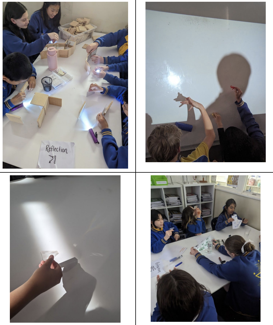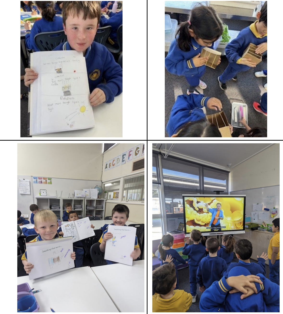 In Foundation students have continued learning about push and pull forces we use every day. A highlight has been our Force Detective Walk where we identified the push and pull forces in the classroom and around the school. In Grades 1 and 2, students have been exploring the science of sound. They designed and built their own instruments using everyday materials, exploring how striking, plucking, shaking, scraping and blowing all create vibrations that make sound. Students in Grade 3/4 have been investigating insulation and how to keep things warm. They learned that animals use fat, fur, feathers and wool as natural insulators, and tested everyday materials such as foil, newspaper, bubble wrap and wool to see which kept a bottle of hot water warm for the longest. In Grade 5/6, students deepened their understanding of how light behaves through a range of activities. They investigated shadows by creating puppet shows, designed mirror mazes to test reflection, and experimented with refraction using water to make arrows, pictures and words flip. We were also lucky enough to have some sunny days to test our light prisms that made rainbows!